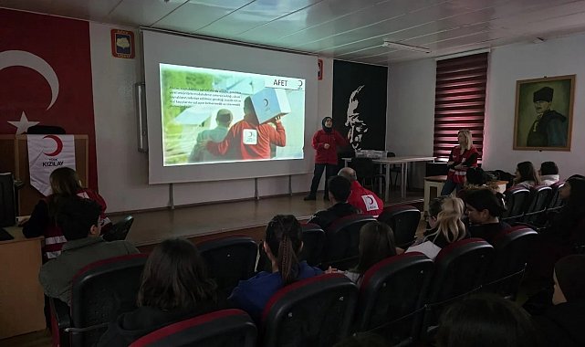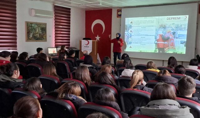 Türk Kızılay'ı Söke Şubesi, toplumda afet bilinci oluşturmaya yönelik farkındalık eğitimlerini sürdürüyor. Bu kapsamda Fatma Tüzzehra Orhun Mesleki ve Teknik Anadolu Lisesi Kızılay Kulübü öğrencilerine yönelik "Afet Farkındalığı ve İklim Değişikliği Semineri" düzenlendi.