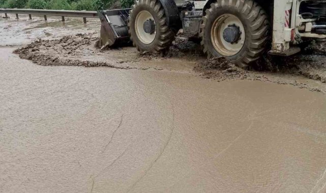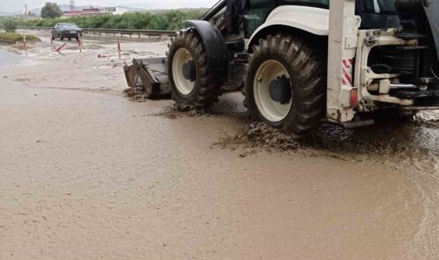 Söke'de sağanak yağış etkili oldu, karayolu çamurla kaplandı
