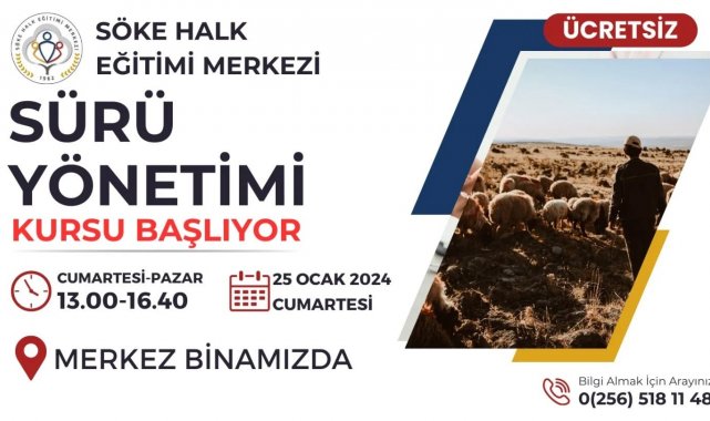 Söke Halk Eğitim Merkezi, hayvancılıkla uğraşan çiftçiler ve ilgilenen herkes için 'Sürü Yönetimi Kursu' düzenleneceğini duyurdu.