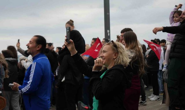 Gösteriyi izlemek için saatler öncesinden sahile gelen vatandaşlar, kamp sandalyeleri ve Türk bayraklarıyla yerlerini aldı. Binlerce kişi, SOLOTÜRK'ün gerçekleştirdiği manevraları büyük ilgiyle takip ederken, o anları cep telefonlarıyla kayda aldı.