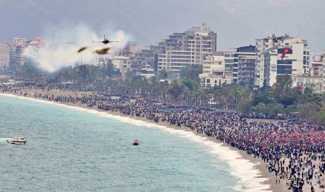 Türk Hava Kuvvetlerinin akrobasi ekibi SOLOTÜRK, Antalya'da 23 Nisan Ulusal Egemenlik ve Çocuk Bayramı kutlamaları kapsamında gerçekleştirdiği gösteriyle binlerce vatandaşı bir araya getirdi. Türkiye Büyük Millet Meclisi'nin açılışının 106'ncı yıl dönümü ve 23 Nisan Ulusal Egemenlik ve Çocuk Bayramı dolayısıyla düzenlenen etkinlikler kapsamında, Türk Hava Kuvvetleri F-16 Akrobasi Timi SOLOTÜRK Antalya semalarında uçuş gerçekleştirdi. Konyaaltı Sahili ile Olbia Kent Meydanı'ndan izlenen gösteri, alanı dolduran vatandaşlara heyecan dolu anlar yaşattı.