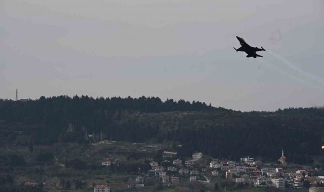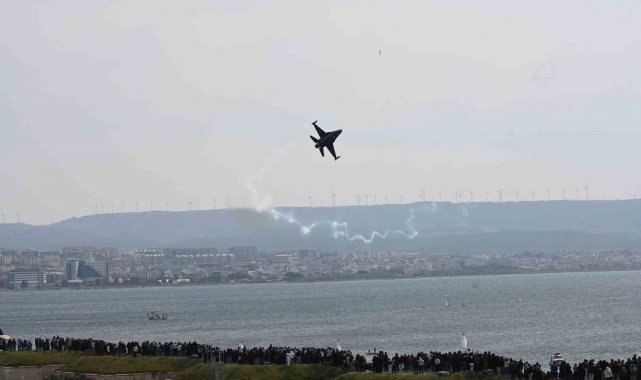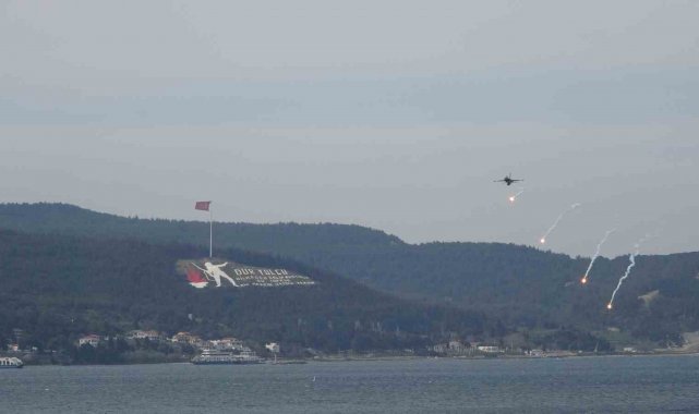 18 Mart Çanakkale Deniz Zaferi'nin 111'nci yıl dönümünde Hamidiye Tabyası önünde gerçekleştirilen gösteri uçuşunu çok sayıda vatandaş takip etti.