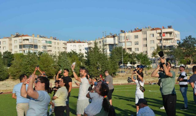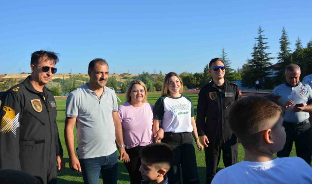 Demirci Kaymakamı Fatih Bayram ve Belediye Başkanı Erkan Kara'da prova uçuşunu vatandaşlarla birlikte izledi.