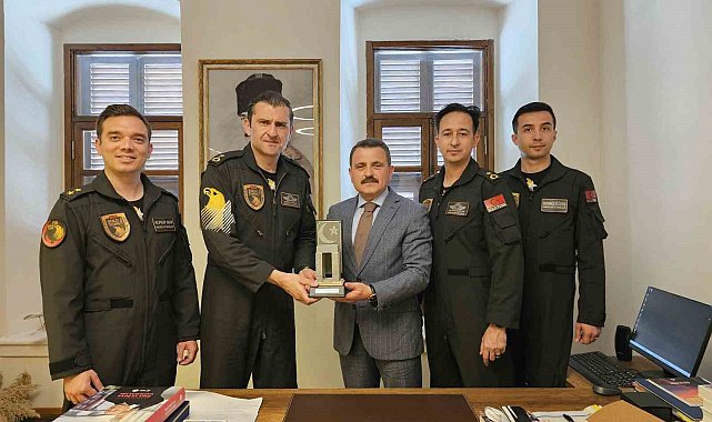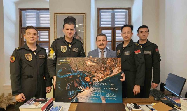 SOLOTÜRK pilotları ise Başkan Kaşdemir'e imzaladıkları Şehitler Abidesi yakınında havadan çekilmiş olan fotoğrafı hediye etti.