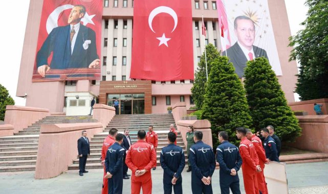 Milli Mücadele'nin ilk adım şehri Samsun'da gerçekleştirilecek olan gösteri uçuşu öncesinde, Türk Hava Kuvvetleri'nin gurur kaynağı pilotları Samsun Valiliği'ni ziyaret etti. Gökyüzünün cesur kartalları, Vali Orhan Tavlı'ya hem SOLOTÜRK hem de Türk Yıldızları logolu tabloları imzalayarak takdim etti.