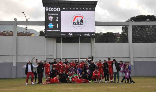 Ankara Demirspor karşılaşmasına 5. dakikada Malik'in golüyle 1-0 geride başlayan Somaspor, 28. dakikada Sinan Alkaş'ın attığı golle eşitliği sağladı. Siyah-beyazlı ekip, mücadelenin 70. dakikasında Ceyhun Çoban'ın golüyle 2-1 öne geçerek sahadan galibiyetle ayrıldı.