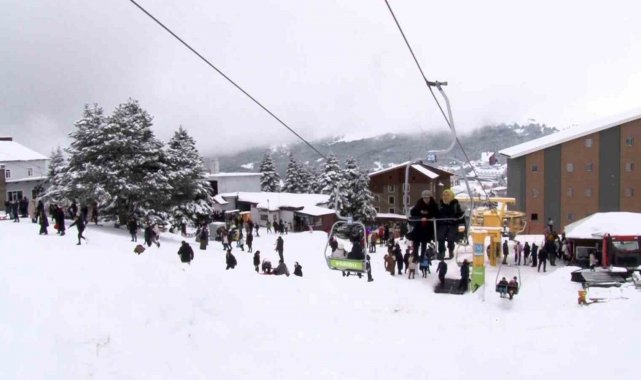 Türkiye'de kış turizminin önemli merkezlerinden Uludağ'da yarıyıl tatili ve hafta sonu yoğunluğu yaşandı. Okulların açılmasından önce son günü fırsat bilen aileler Uludağ'a akın etti.