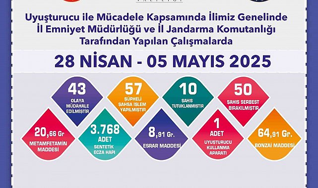 Edinilen bilgilere göre, İl Emniyet Müdürlüğü ve İl Jandarma Komutanlığı Trafik Denetleme Şube Müdürlüğü ekiplerinin trafik denetimleri sürüyor. Bu çerçevede, 28 Nisan - 5 Mayıs tarihleri arasında kent genelinde çalışma yapıldı. Ekiplerce yapılan denetimlerde, 4 bin 5 yük taşımacılığı, 885 yük taşımacılığı, 3 bin 380 alkol denetimi, 2 bin 135 motosiklet, 8 bin 714 emniyet kemeri ve 12 bin 508 diğer kontrol türleri gerçekleştirildi. Çalışmalar sonucunda 31 bin 627 araç kontrol edilirken, 9 bin 955 adet trafik cezası yazılıp, 313 araç trafikten men edildi ve 86 sürücü belgesine el konuldu. Ayrıca, ekiplerce 47 yaralanmalı ve 66 maddi hasarlı trafik kazasına da müdahalede bulunuldu.