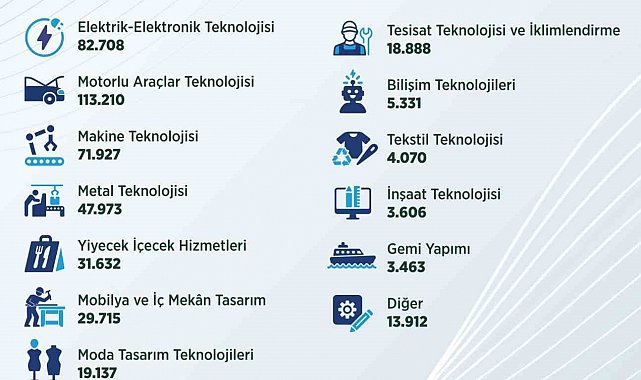 Çalışma ve Sosyal Güvenlik Bakanı Vedat Işıkhan, sosyal medya hesabından yaptığı açıklamada Türkiye'nin Ulusal İstihdam Stratejisi ve Orta Vadeli Program hedeflerini işaret ederek, "İhtiyaç duyulan stratejik öneme sahip alanlarda nitelikli işgücümüzü yetiştiriyoruz. İŞKUR aracılığıyla son 3 yılda 445 bin 572 kişiye 63,5 milyar TL staj desteği sağladık. Toplamda 95 bin 341 kişinin kalfalık belgesi, 170 bin 726 kişinin ustalık belgesi almasını sağladık" ifadelerini kullandı.