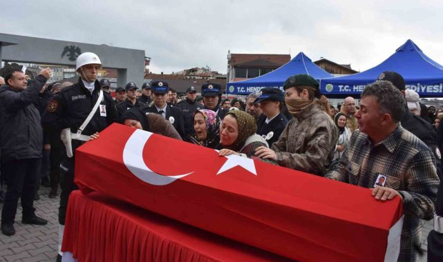 Sakarya'nın Hendek ilçesinde evinde silahını temizlediği sırada meydana gelen kazada hayatını kaybeden 36 yaşındaki polis memuru, törenle son yolculuğuna uğurlanırken küçük kızının babasının Türk bayrağına sarılı tabutuna sevgiyle dokunduğu anlar yürekleri dağladı.