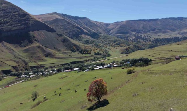 Artvin'in Ardanuç ilçesine bağlı Zekerya Köyü'nde sonbahar erken yüzünü gösterdi. Yüksek rakımıyla dikkat çeken köyde doğa, sarı ve kızıl tonlara büründü.