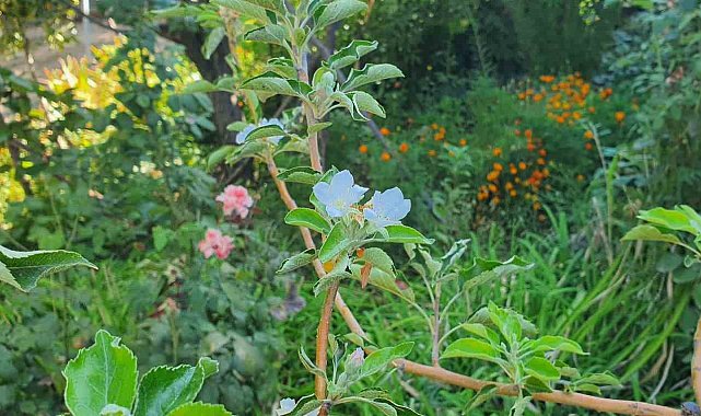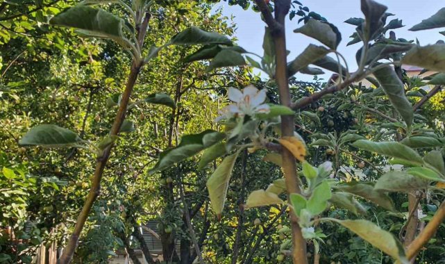 Sonbaharda bahar sürprizi: Elma ağacı çiçek açtı