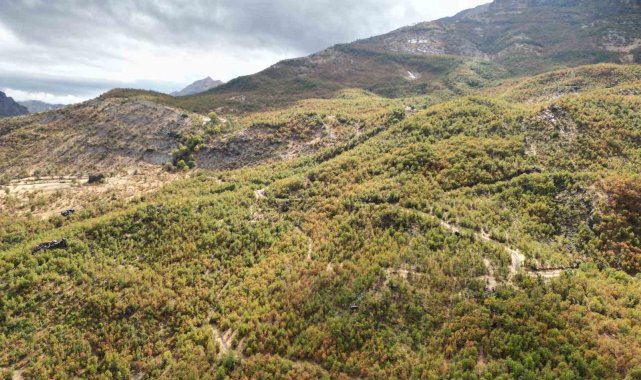 Şırnak'ta son bahar ayları ile beraber meşe ormanlarında yapraklar sararmaya başladı. Havadan görüntülenen orman ve dağlar kartpostallık görüntüler oluşturdu.