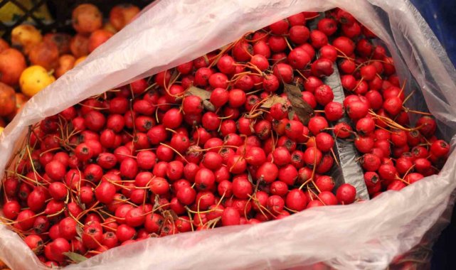 Sadece Eylül ve Ekim aylarında taze olarak tüketilebilen ve dört mevsim tüketilebilmesi için reçeli, marmelatı ve tarhanası yapılan şifa kaynağı kızılcık, pazar tezgahlarında yerini aldı.