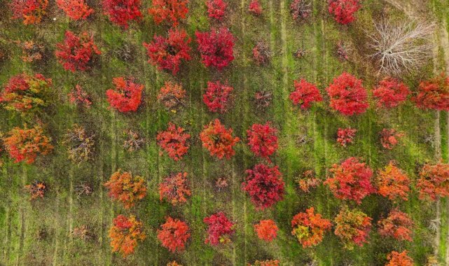 Bursa'nın İnegöl ilçesinde yer alan meyve bahçeleri, sonbaharın tüm renklerini gözler önüne sererken, bölgeye gelen ziyaretçiler için eşsiz bir manzara sunuyor. Renk cümbüşüne dönen doğa, fotoğraf tutkunlarının da ilgi odağı haline geldi. Fotoğraf sanatçısı Şaban Kılıçcı, bu görsel şöleni dron ve fotoğraf çekimleriyle ölümsüzleştirdi. Kılıçcı'nın objektifinden yansıyan kareler, Uludağ eteklerinde sonbaharın tüm güzelliğini gözler önüne serdi.