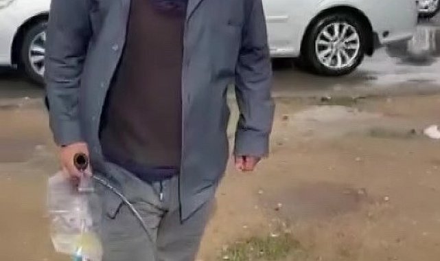 Sonda tüpüne meyve suyu koyup dilencilik yapan şahıs yakalandı
