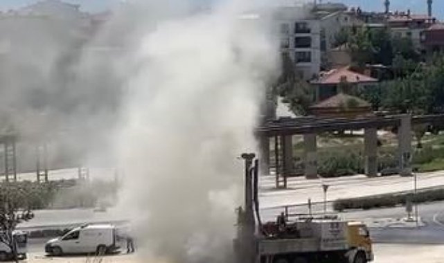 Sondaj yapılırken doğalgaz hattı patladı