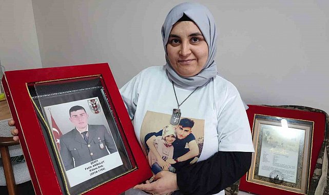 "Üzerimdeki tişörtü Fatih, Sevgililer Günü'nde bana almıştı. 'Ben şehit olursam hep üzerinde taşı, hiç çıkarma' demişti. 'Şehit olursam üzülme, ayakta durmaya çalış' dedi. Sadece Sevgililer Günü'nde değil, her zaman bunu giymeye çalışıyorum. Bu tişörtü giyince sanki Fatih'im yanımdaymış gibi hissediyorum."