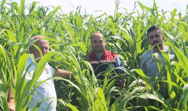İlçeye bağlı Dereköy köyünde üretici Kasım Gezgin, arpa hasadının ardından tarlasına ikinci ürün olarak sorgum-sudan otu ekti. Hasat olgunluğuna ulaşan ürün, bölgedeki hayvancılık sektörü için önemli bir silajlık yem kaynağı olarak dikkat çekiyor. Yüksek verimi ve besleyici kalitesiyle bilinen sorgum-sudan otu, çiftçinin hem gelirini artırıyor hem de hayvanların kaliteli kaba yem ihtiyacını karşılıyor. Sorgum-sudan otu üretimi, yörede yem bitkisi çeşitliliğinin artmasına ve sürdürülebilir hayvancılığa katkı sağlıyor.