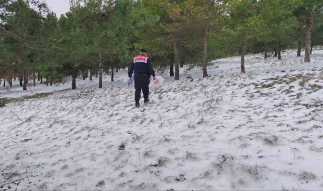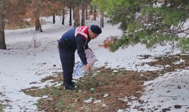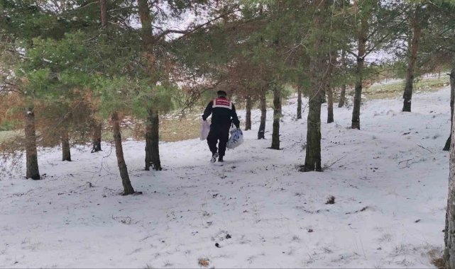 Yozgat'ın Sorgun ilçesinde Jandarma Komutanlığı ekipleri doğadaki yaban hayvanları için yem bıraktı.
