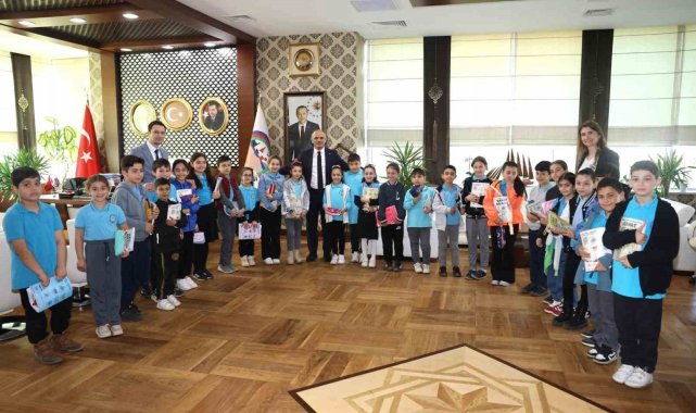 Başkan Söğüt, öğrencilere minik hediyeler vermeyi de ihmal etmedi.
