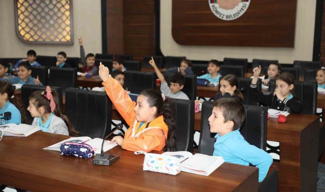 Yaklaşık 20 öğrencinin katıldığı derste, öğrenciler yerel yönetim ile ilgili ders sorularını Başkan Şener Söğüt'e aktardı. Belediye Meclis Salonu'nda gerçekleştirilen buluşmada çocuklar yerel yönetimlerle ilgili sorular dışında kendi merak ettikleri soruları da yöneltince renkli görüntüler oluştu. Öğrencilerle tek tek ilgilenen ver her birinin sorularını büyük bir mutlulukla cevaplayan