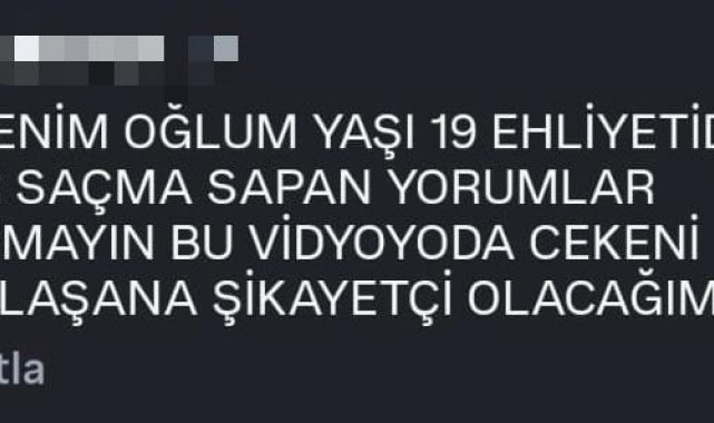 Öte yandan söz konusu paylaşımın altına yorum yapan sürücünün babası, oğlunun 19 yaşında olduğunu ve ehliyetinin olduğunu söyledi. Baba söz konusu videoyu çekende, paylaşandan da şikayetçi olacağını dile getirdi.