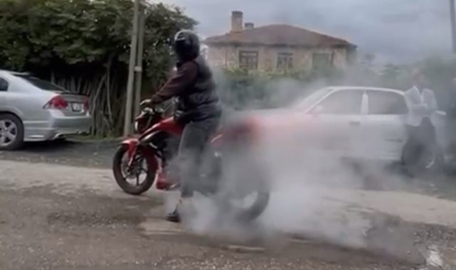 Samsun Çarşamba ilçesinde motosikleti ile durduğu yerde duman çıkartan sürücü görüntüleri sosyal medyada paylaşınca polis tarafından tespit edilerek ceza uygulandı.