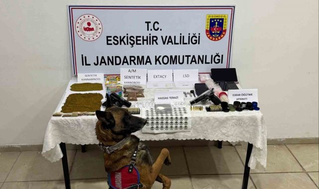 Jandarma ekiplerince şüphelinin evinde arama yapıldı. Ekiplerce gerçekleştirilen arama sonucunda; 1 adet tabanca, 1 adet kurusıkı tabanca, 2 adet şarjör, 52 adet tabanca fişeği, 100 adet kurusıkı tabanca fişeği, 680 gram bonzai, 385 gram sentetik kannabinoid A.M. uyuşturucu maddesi, 20 gram esrar, 12 adet extacy, 8 adet LSD, 1 adet hassas terazi, 1 adet tablet, 6 adet uyuşturucu madde öğütücü aparat, 3 adet uyuşturucu kullanma aparatı, 321 adet kilitli poşet, 20 adet vakumlu ambalaj ve 190 adet sticker ele geçirildi.