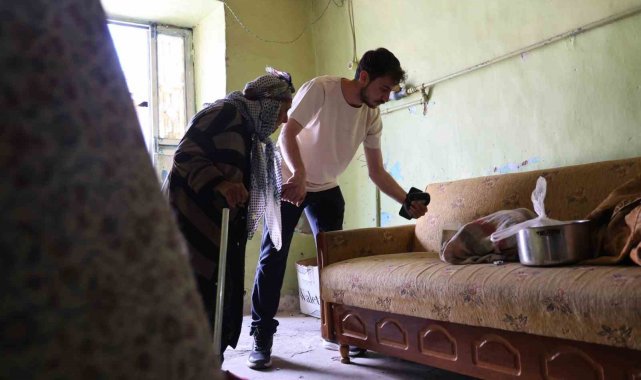 Sosyal sorumluluğun güzel örneği: Yaşlı kadının evini temizleyip gıda yardımı yaptılar