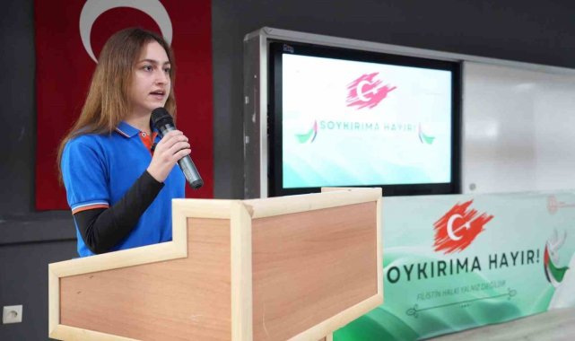 Etkinlikte bir konuşma yapan Millî Eğitim Müdürü Emre Çay, Filistin'deki drama karşı gösterilen hassasiyetin önemini vurguladı. Çay, konuşmasında şu ifadelere yer verdi: "Filistin'de yaşanan insanlık dramı karşısında sessiz kalmamak, vicdanı diri tutmak hepimizin ortak sorumluluğudur. Bugün burada, öğrencilerimizin kalplerinde insanlık onurunu, adalet duygusunu ve merhameti yaşatmak için bir aradayız"