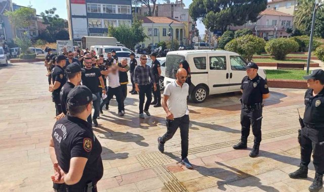 Aydın'ın Efeler ilçesinde faaliyet gösteren bir spor salonunun kurşunlanması olayı ile ilgili gözaltına alınan 4 şüpheli, geniş güvenlik önemleri eşliğinde adliyeye sevk edildi.