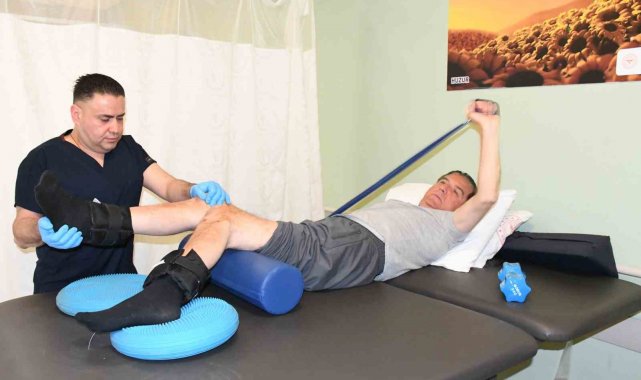 Bursa'da spor sonrasında uyuyup ertesi gün yataktan kalkamayan ve omurilik felci teşhisi konulan iş adamı Cengiz Şaşmaz, Yozgat Bakım ve Rehabilitasyon Merkezi'nde eski sağlıklı günlerine geri dönebilmek için fizik tedavi görüyor.