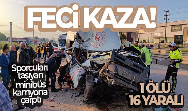 Sporcuları taşıyan minibüs hafriyat kamyonuna çarptı: 1 ölü, 16 yaralı
