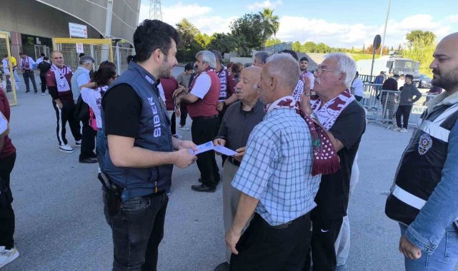 Ayrıca, TEM Şube Müdürlüğü ekiplerince yine Hatayspor ile Eyüpspor arasında oynanan müsabakaya katılan vatandaşlara terör örgütleri, bu örgütlerin uzantıları, terörün özellikle gençler üzerindeki olumsuz etkileri, eleman kazanma yöntemleri ile ailelerin tutum ve davranışlarının önemi hakkında bilgiler verildi ve broşürler dağıtıldı.