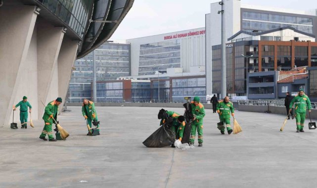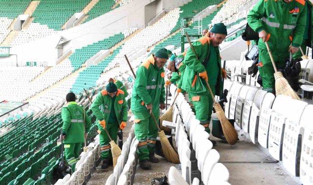 Osmangazi Belediyesi Temizlik İşleri Müdürlüğü ekipleri, bu hafta oynanan ve Bursaspor'un 2-0 kazandığı Ergene Velimeşespor karşılaşmasının ardından temizlik çalışması gerçekleştirdi. Stadyum çevresinde, koridorlarda ve tribünlerde iki gün boyunca temizlik çalışması yürüten ekipler, 43 bin 361 kişi kapasiteli dev stadyumu baştan aşağı temizleyerek bir sonraki karşılaşma için hazır hale getirdi.