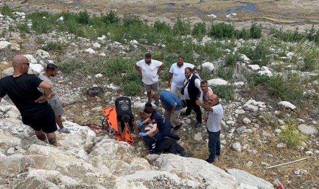 Stant kurmak isterken kayalıklara düşen yaşlı adam yaralandı