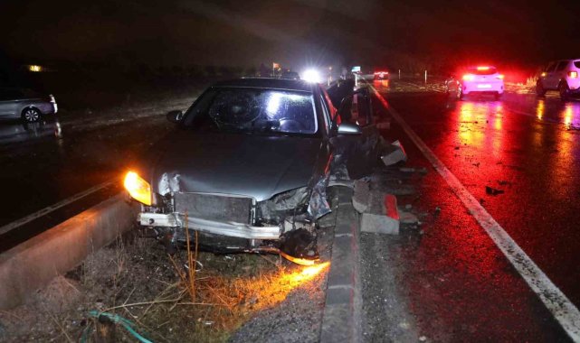 Su birikintisine giren otomobil refüje düştü: 1 yaralı