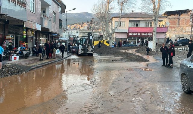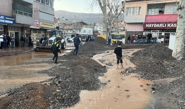 Kahramanmaraş'ta çalışma sırasında iş makinesinin temas ettiği su borusunu patladı, bazı iş yerleri ile 3 araç zarar gördü.