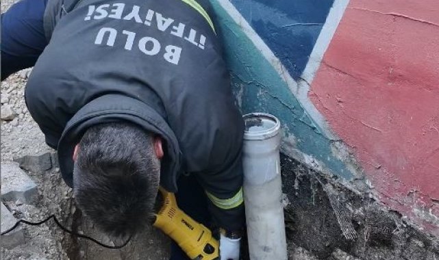 Bolu'da su borusunda sıkışan yavru kedi, itfaiye ekiplerinin çalışmasıyla kurtarıldı.