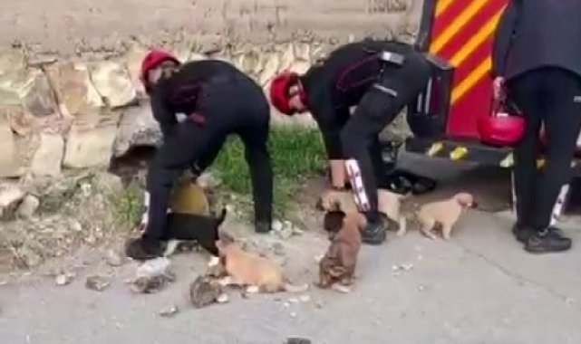 Kahramanmaraş'ta itfaiye ekipleri, su gideri borusuna sıkışan köpek yavrularını kurtardı. Borudan 7 yavrunun çıkması dikkat çekti.