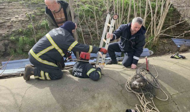 Edirne'de kullanılmayan bir su deposuna düşen yavru köpek, çevredeki vatandaşların ihbarı üzerine kurtarıldı.