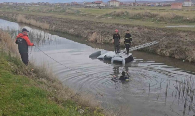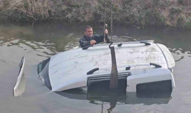 Su dolu kanala gömülmüş araç ekipleri alarma geçirdi