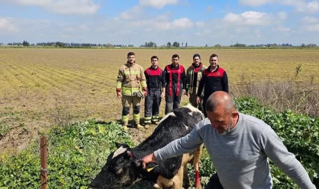Antakya ilçesi Apaydın Mahallesi'nde otlanan inek, sulama kanalına düşerek mahsur kaldı. İneğin çırpınışını gören sahibi durumu 112 Acil Çağrı Merkezi'ne bildirdi. İhbar üzerine olay yerine Hatay Büyükşehir Belediyesi itfaiye ekipleri sevk edildi. Kısa sürede bölgeye gelen ekipler, ineği kurtarmak için çalışmalara başladı. Halatların ineğe bağlanmasının ardından kepçe yardımıyla inek mahsur kaldığı yerden kurtarıldı. Sulama kanalından kurtarılan inek, ekipler tarafından sahibine teslim edildi.