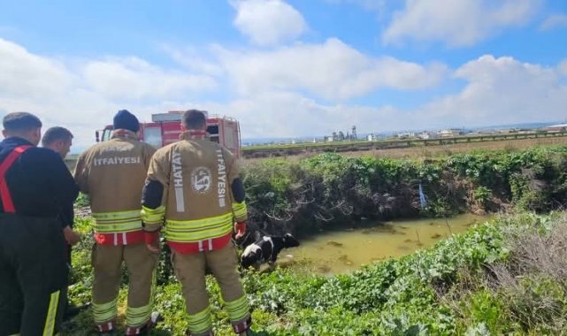 Hatay'ın Antakya ilçesinde otlanırken su kanalına düşen inek, itfaiye ekipleri tarafından kurtarıldı.