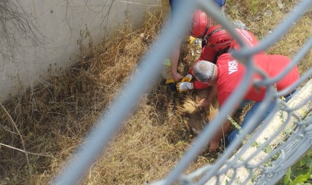 Kısa sürede olay yerine ulaşan ekipler, mahsur kalan keçiyi kanaldan çıkararak güvenli alana aldı.
