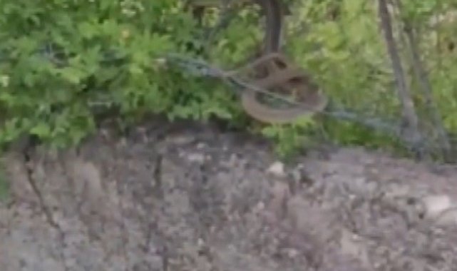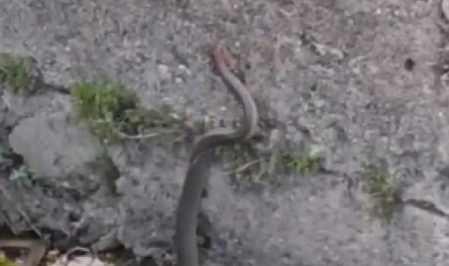Yukarı çıkarılan yılan doğaya salındı. Bu anlar cep telefonu kamerasına yansıdı.