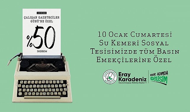Gaziosmanpaşa Belediyesi, 10 Ocak Çalışan Gazeteciler Günü dolayısıyla Su Kemeri Sosyal Tesisi'nin kapılarını, basın emekçilerine yüzde 50 indirimle açıyor.