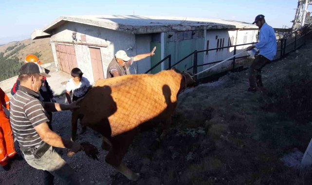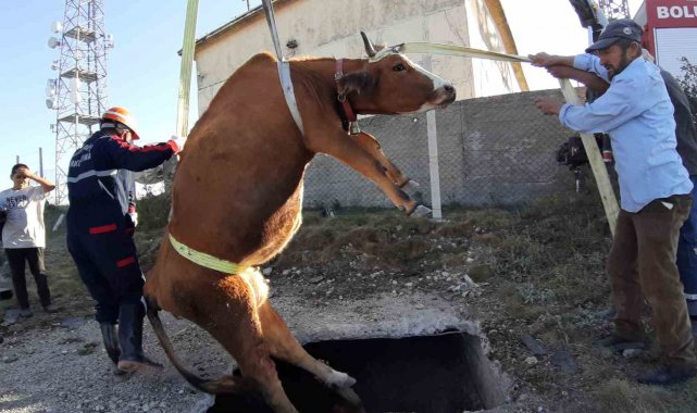 Bolu'nun Mudurnu ilçesinde boş su kuyusuna düşen inek, itfaiye ekiplerinin yaklaşık 2 saat süren çalışması sonucu kurtarıldı.