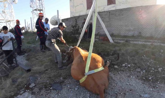 Su kuyusuna düşen inek için kurtarma operasyonu